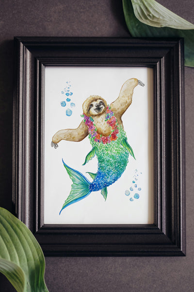 Sloth Mermaid Print