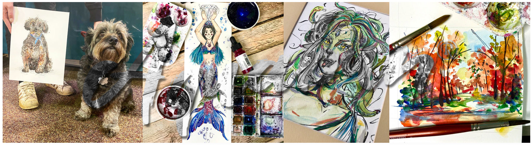 Once your commission starts, I will be in regular contact. I always start with giving each client a sketch to confirm before starting the painting process. I accept up to 3 rounds of changes to the sketch. Complicated changes may require an additional fee. This is a pretty rare occurrence, as I always do my best to adhere to the client's vision and never purposefully botch a drawing to collect more expenses. After the sketch is completed, I continue with painting and inking. I always recommend to clients that they be trusting of the way in which I apply color for the best results. Color schemes are very helpful if you have one in mind, of course! But too much input on color can lead to the end result looking stiff or clunky. I have a very distinct style in which I work, so I recommend browsing my gallery/art on Facebook or Instagram to become familiar with my style and to be sure that I am the right artist for your project. Please also keep in mind I do all of my art traditionally with watercolors meaning I will not be able to correct or change the piece outside of adding minor details in white/blank spaces.