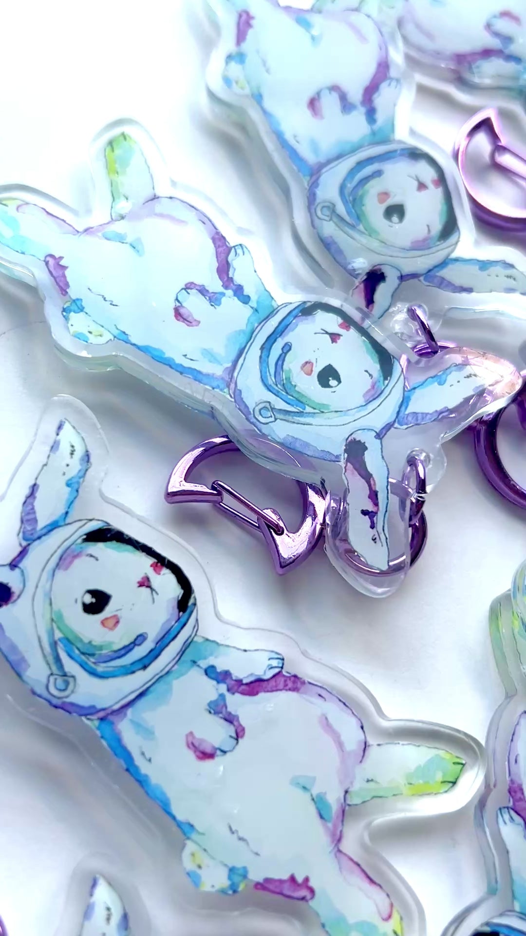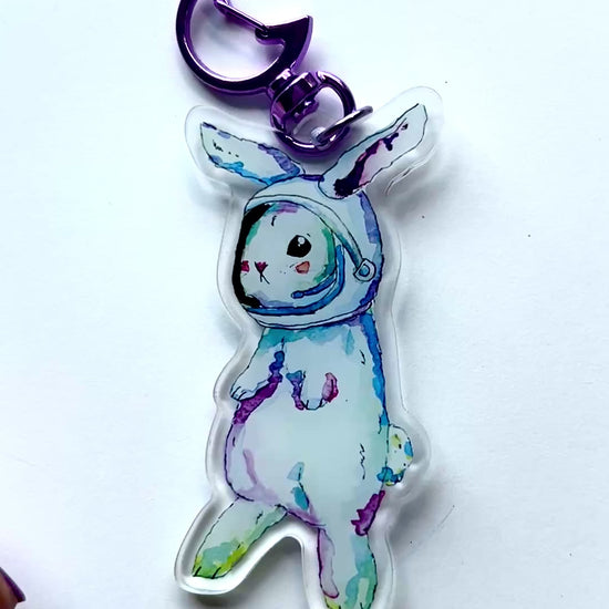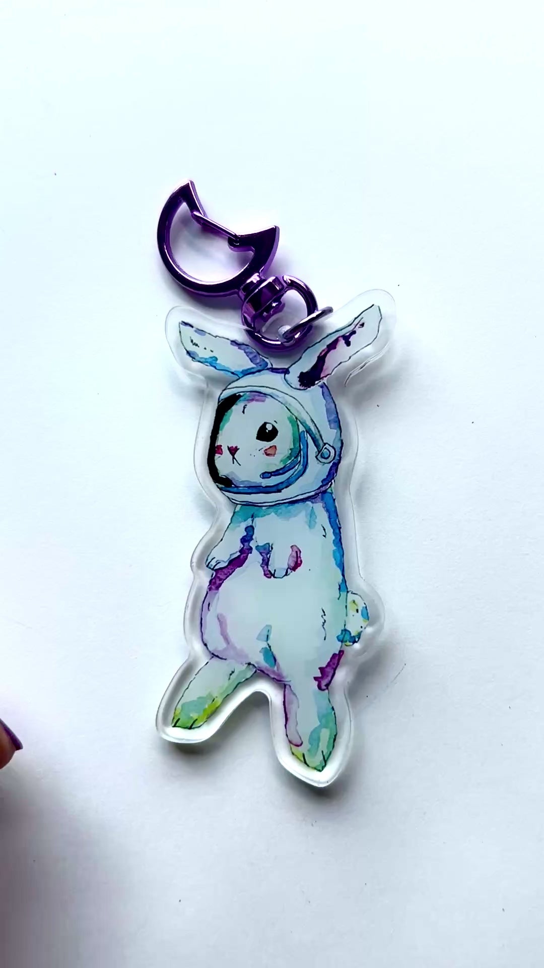 This listing is for one transparent acrylic keychain featuring my original watercolor illustration! Each keychain is double sided and approx. 3 inch in size. Clasp is metallic purple.