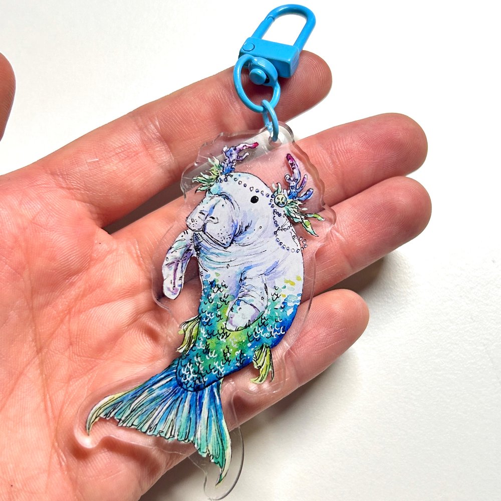 This listing is for a keychain of my original "Manatee Mermaid" watercolor design!