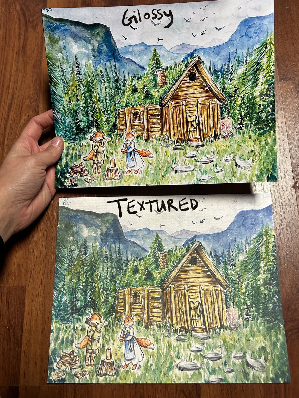 The textured paper is produced in the United States on 216 gsm Acid Free/Lignin Free watercolor paper. This paper is designed to mimic the texture of watercolor paper.